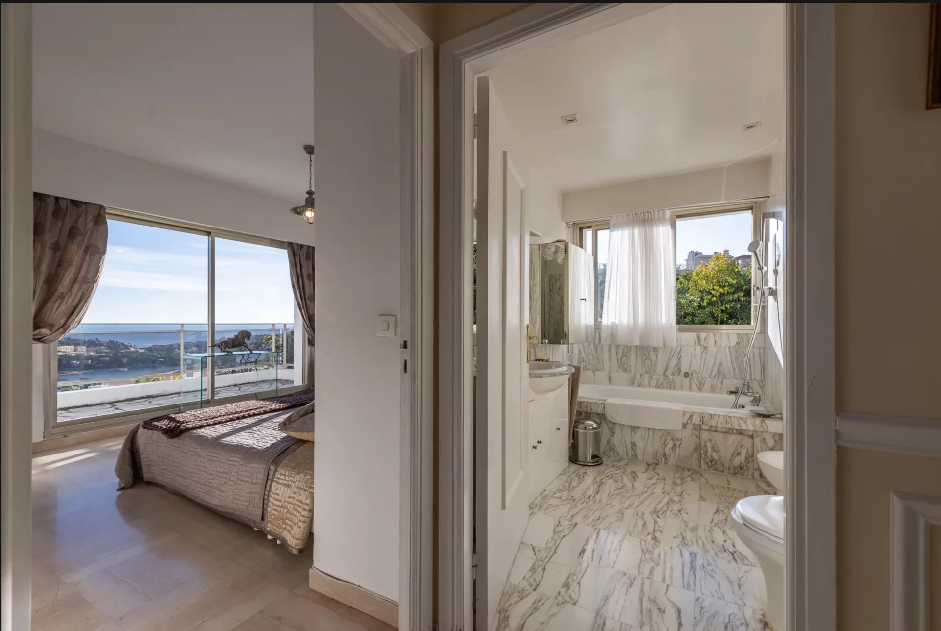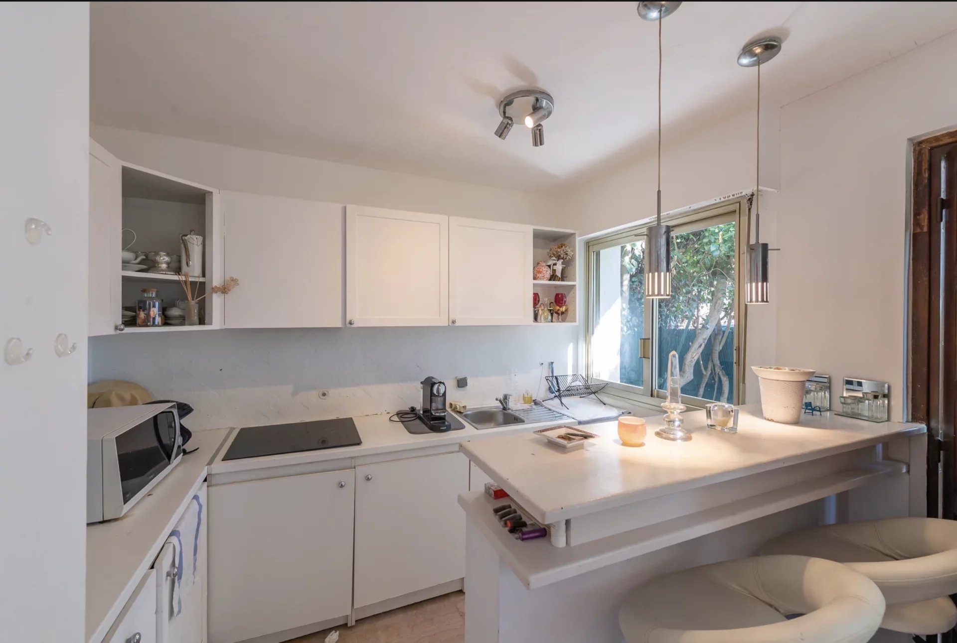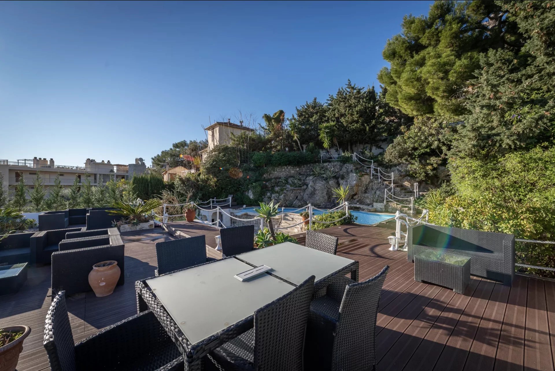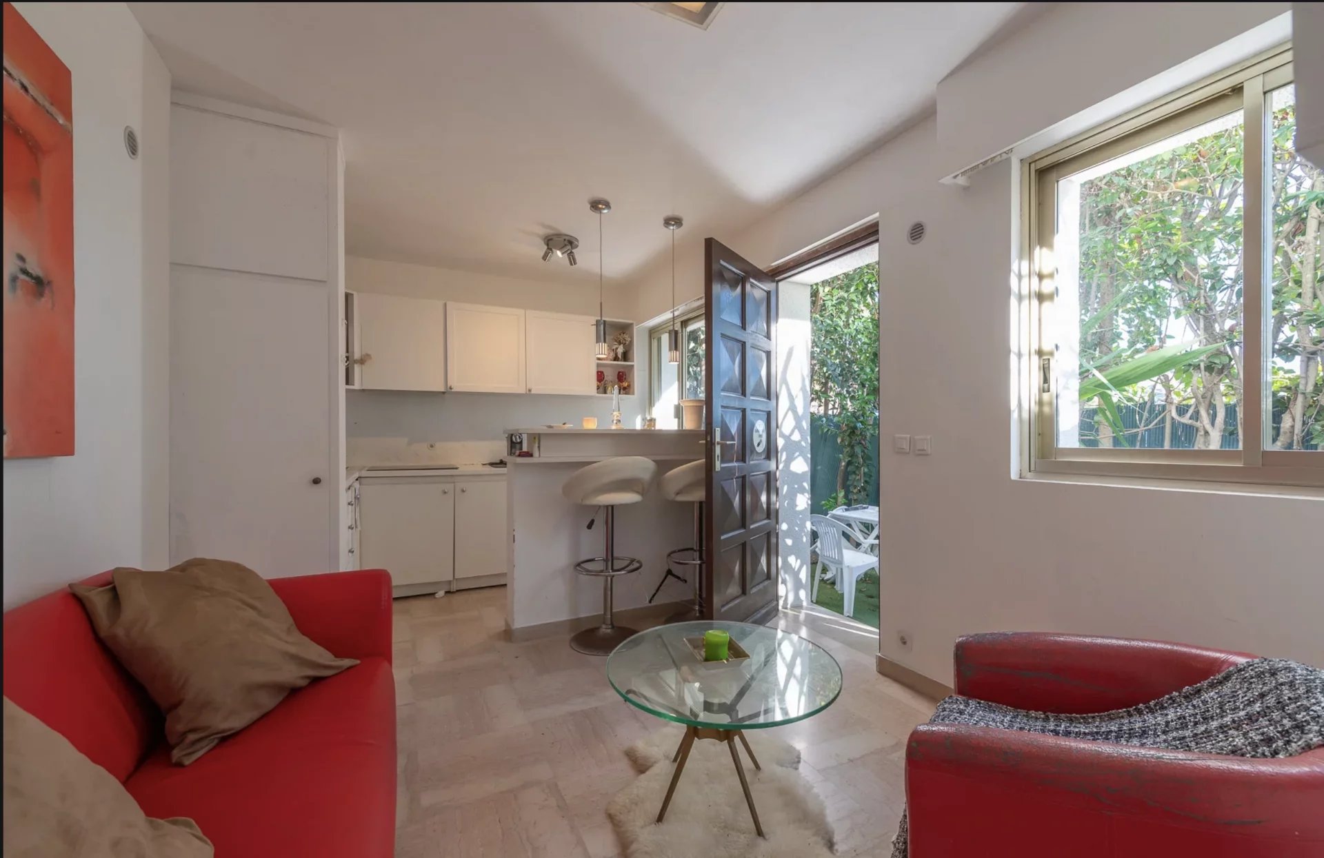 On the garden level of the villa is a completely independent 2-room flat, comprising a living room/kitchen, bedroom and shower room.